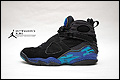 에어 조던 8 아쿠아 (Air Jordan 8 Aqua) [ 8 ] 에어조던8 아쿠아의 포토리뷰입니다. 1993년, 마이클 조던의 3연속 우승이라는 최고 전성기 시기를 함께 한 모델로서 조던 시리즈 중 아직까지도 많은 인기를 누리고 있는 신발입니다. 조던8 아쿠아 컬러는 93년 오리지널 모델 발매 이후, 2007년 딱 한 번 리트로되었었습니다. 제가 구입한 것은 상태가 비교적 좋은 중고품을 싼 값에 구해온 것으로, 2007년 리트로 제품입니다. ▼ 아쿠아라는 별명답게 진한 파란색 그래피티 포인트가 검정 스웨이드 바디 곳곳에 들어가 있는데요. 그러나 보기만 해도 더워지는 검정색 스웨이드 신발에 '아쿠아'라는 이름은 어딘가 어색한 느낌입니다. 아쿠아라는 이름을 갖다붙여도 그닥 시원하지 않을 것 같은 느낌... -_ - ㅋ ▼ 이 신발의 가장 큰 특징은 발등에 씌워진 X자 스트랩이라고 할 수 있습니다. 발을 단단하게 잡아주어 플레이 시의 안정성을 높여주는 역할을 하고, 시각적으로도 독특한 멋을 뽐냅니다. 다만 신고 벗을 때마다 스트랩을 풀어주어야 하는 번거로움을 감수해야 하죠. -_ - ▼ 스트랩을 펼치면 일반적인 구조의 끈고리들이 드러납니다. 허라치핏과 촘촘한 끈구조, X스트랩 덕분에 포근하면서 탄탄한 피팅을 맛볼 수 있죠. ▼ X 스트랩 위에는 조던의 등번호인 23이 엠보싱처리 되어 있습니다. 다른 색상의 모델에서는 이 부분이 자수처리되어 있는... |